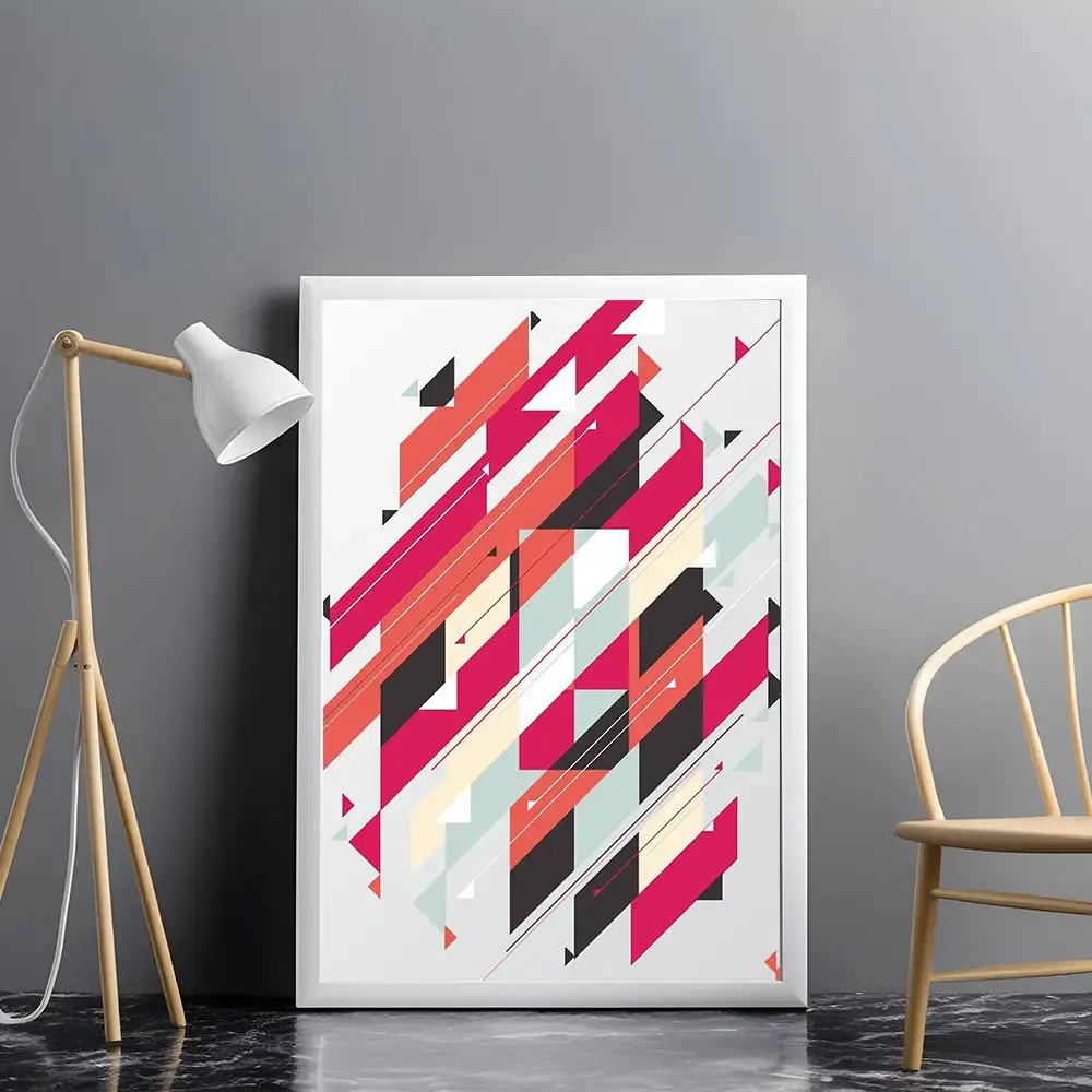 Un tablou abstract color emană energie și dinamism, atrăgând atenția printr-o explozie de forme și culori care se îmbină într-o armonie vizuală surprinzătoare.