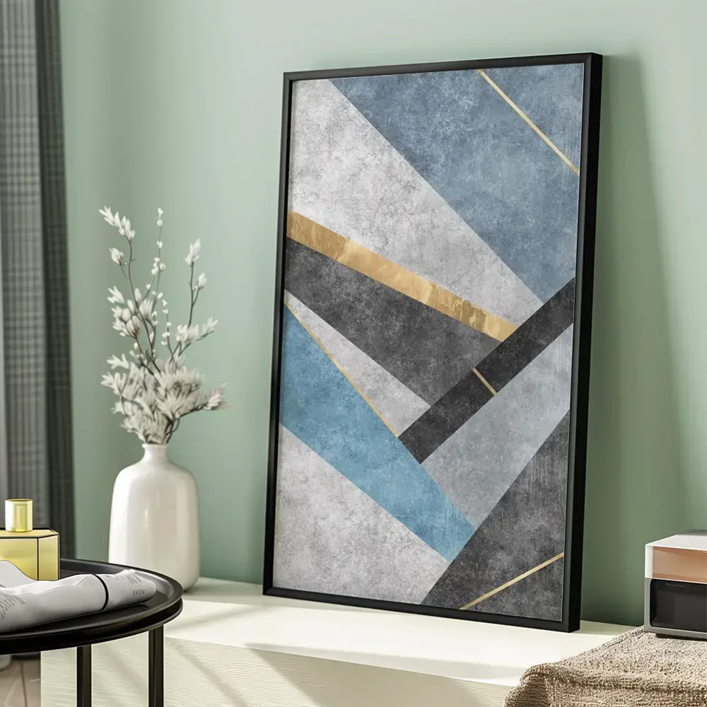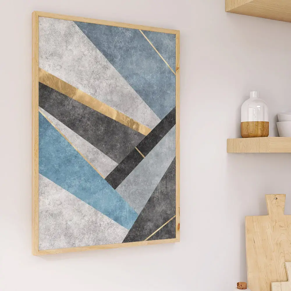 Un tablou abstract geometric floral emană energie și dinamism, atrăgând atenția printr-o explozie de forme și culori care se îmbină într-o armonie vizuală surprinzătoare.