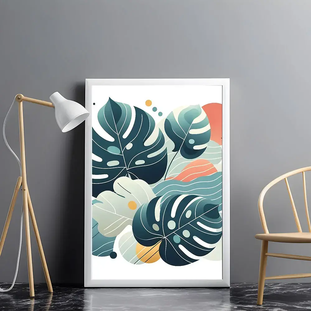 Un tablou abstract floral emană energie și dinamism, atrăgând atenția printr-o explozie de forme și culori care se îmbină într-o armonie vizuală surprinzătoare.